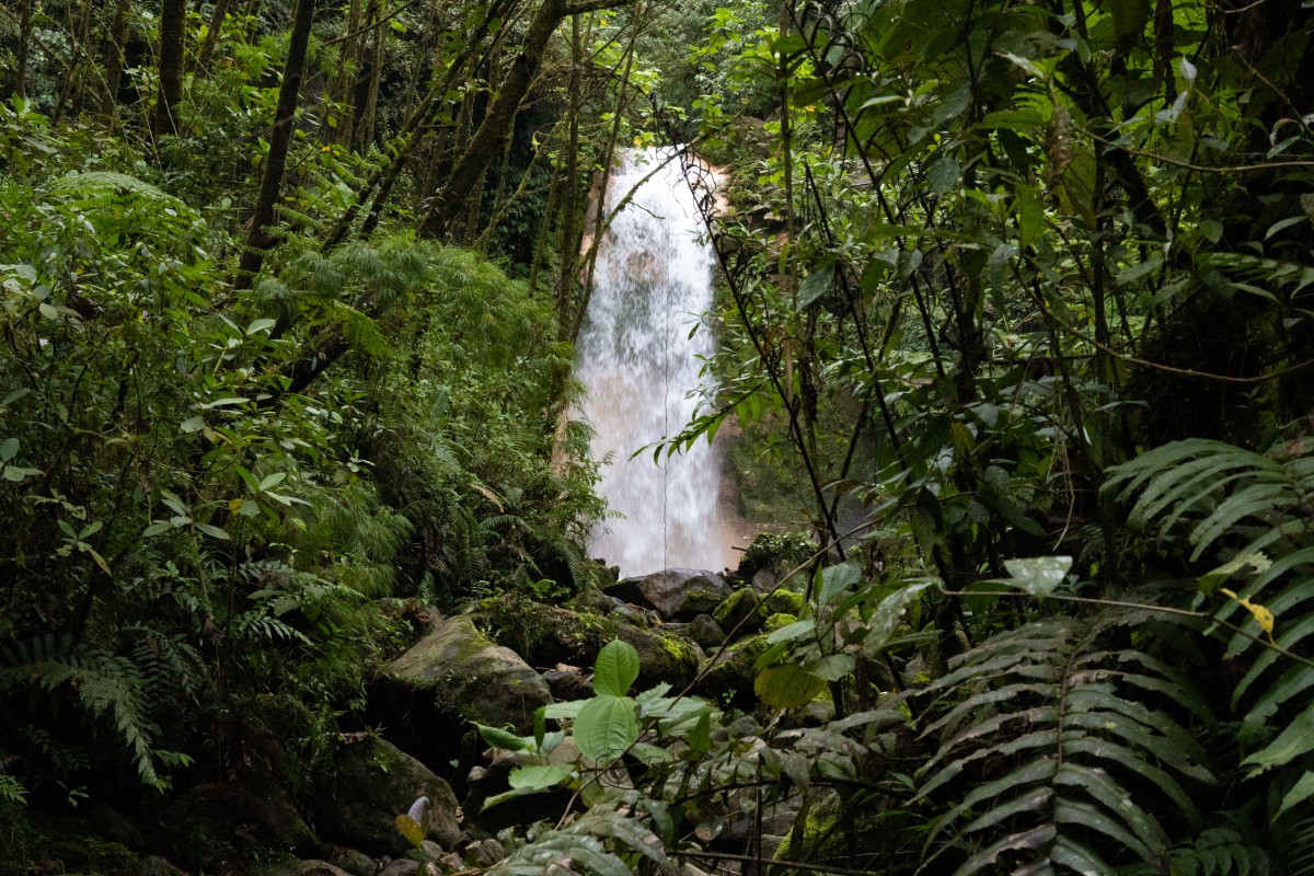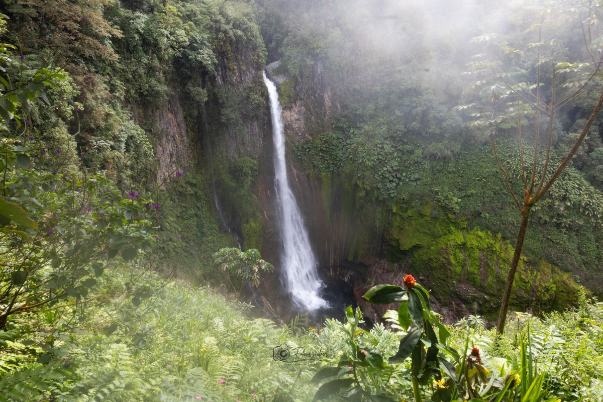 Um den Arenalsee herum fuhren wir in die Nebelwaldregion Monteverde zur Cala Lodge. Das Empfangskomitee wartete bereits vor unserem Zimmer, ein neugieriger Nasenbär. Aber auch Agutis sahen wir in im Garten der Hotelanlage und riesige „Zimmerpflanzen“ die bei uns zu Hause stehen. Im Dörfchen Santa Elena deckten wir uns nun mit Souvenirs ein und konnten ein typisches Abendessen probieren. Eine richtige Regenwaldwanderung, bei strömendem Regen haben wir im Nationalpark El Tigre unternommen. Nun ist einem auch klar, warum sogar die öffentlichen Busse Schnorchel haben. Nun fehlte nur noch ein Wasserfall, also machten wir uns auf die Suche nach einem. Im Dschungel versteckt und nur nach einer Wanderung durch den Regenwald erreichbar, den „Wanderweg“ sieht man dabei nicht, aber der Anblick ist atemberaubend. Einen zweiten Wasserfall, der über 70m in die Tiefe stürzt, konnten wir von einer Aussichtsplattform bestaunen.