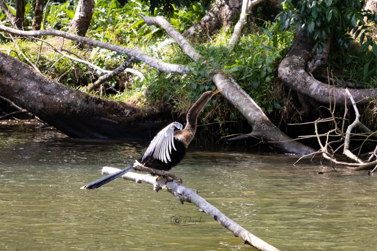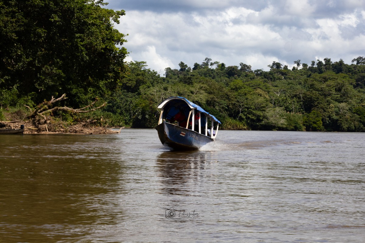 Nach dem Frühstück fuhren wir Richtung Norden nach Boca Tapada, zur Pedacito de Cielo Ecolodge, direkt am Fluss San Juan. Die kleinen Bungalows sind auf Stelzen errichtet, um einen fantastischen Blick in die Baumkronen und auf den Fluss zu ermöglichen. Brüllaffen turnten direkt vor unserem Balkon in den Ästen und Kolibris schwirrten durch das Restaurant. Am nächsten Morgen unternahmen wir eine Bootsfahrt. Unser Captain und gleichzeitig Guide Hugo erklärte uns die Eigenheiten dieser Region, zeigte uns Krokodile, diverse Vogelarten, Schildkröten, Leguane und die typischen Pflanzen am Flussufer. Nach einem kleinen Abstecher nach Nicaragua durften wir einen typisch Costaricanischen Kaffee kosten, dazu wurden frittierte Kochbananen gereicht – sehr lecker!