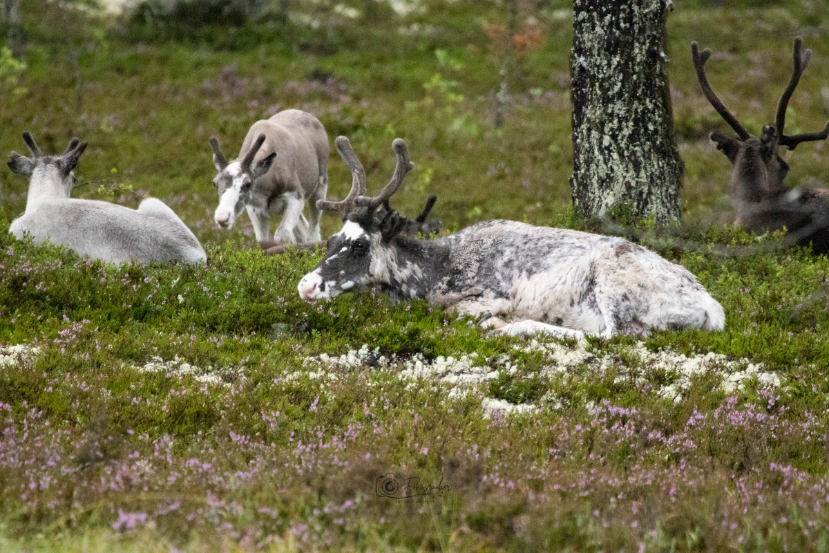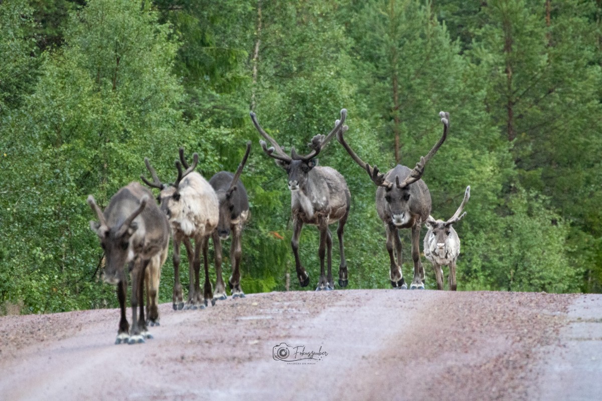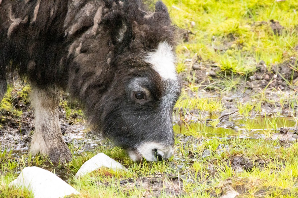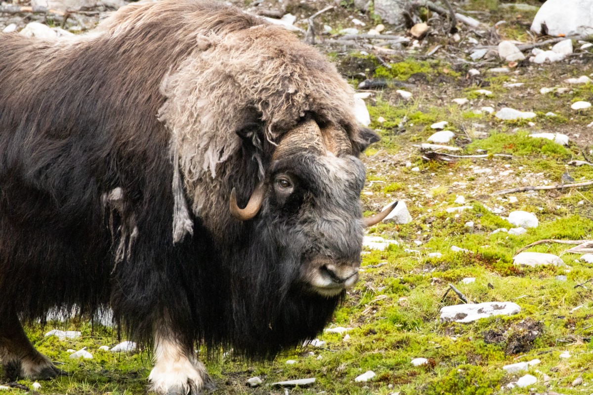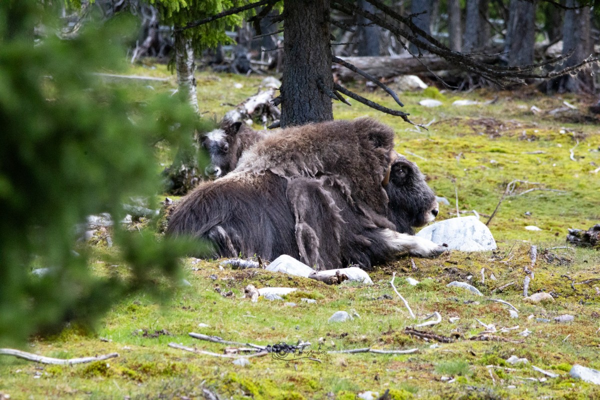 In Tännäs buchten wir eine geführte Tour zu den Moschusochsen. Wir erfuhren viel über das Programm zur Auswilderung einzelner Tiere, um den Bestand in der Natur zu sichern und konnten diese prähistorischen Tiere aus nächster Nähe bestaunen und fotografieren. Wir hatten Glück, denn die Herde hatte zu diesem Zeitpunkt noch 3 Jungtiere.