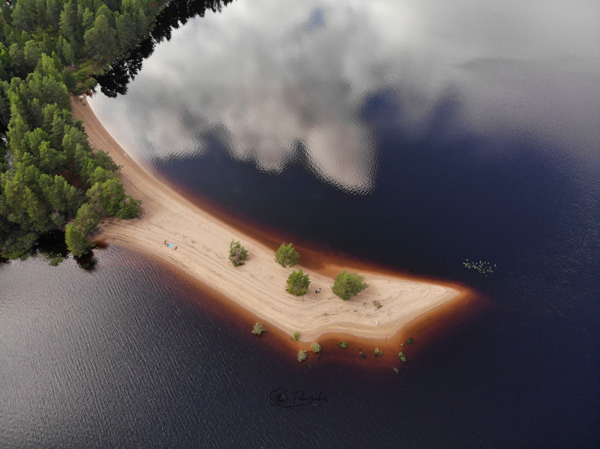 Den Strand von Närsjö fanden wir über Social Media und wollten uns selbst davon überzeugen, ob der Strand wirklich so schön ist. Klares JA! Aus der Vogelperspektive ist die Landzunge in den See unfassbar schön, die Wolken spiegeln sich im ruhigen Wasser und die rötliche Farbe des Wassers gibt einen schönen Kontrast zum Sand.