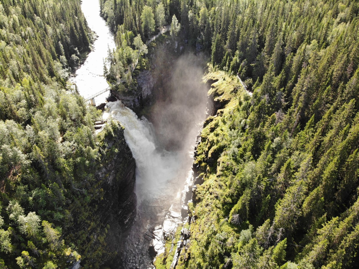 Der Wasserfall Hällingsåfallet war eines der spektakulärsten Naturwunder unserer Reise. Diesen erreichten wir nach einer schönen Wanderung durch den Canyon, bei der ich auf einige interessante Pilzarten stiess, die ich natürlich gleich bildlich festhalten musste. Der tosende Wasserfall und der doppelte Regenbogen waren unglaublich schön und aus der Vogelperspektive noch eindrücklicher.